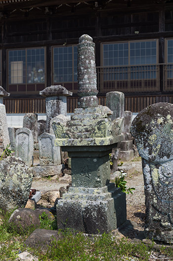 宝篋印塔……総高158cm。基礎に「正勢が願主となり僧・尼僧・石匠が賛同して永和二年(1376)に造立した」との意味の銘があります。伏鉢(ふせばち)から上は後補。