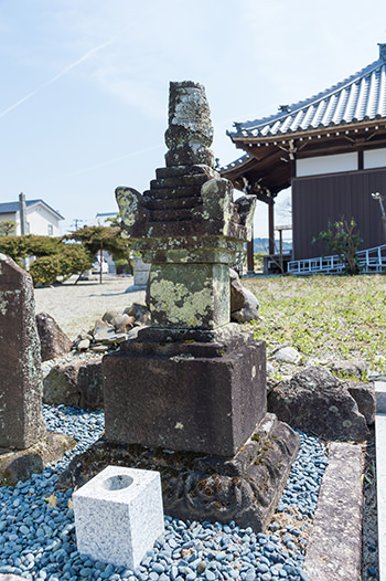 宝篋印塔……現高93cm。基礎に「盛俊が願主となり僧・尼僧五十余人が逆襲のため永正十五年(1518)に造立した」との意味の銘があります。相輪(そうりん)上半部と基壇(きだん)が欠如。