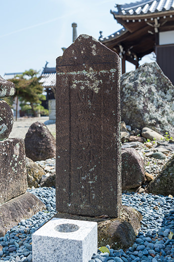 六字名号板碑……総高55cm。彫法により室町時代末期の造立と思われ、正面に「南無阿弥陀佛」と六字名号が刻まれています。