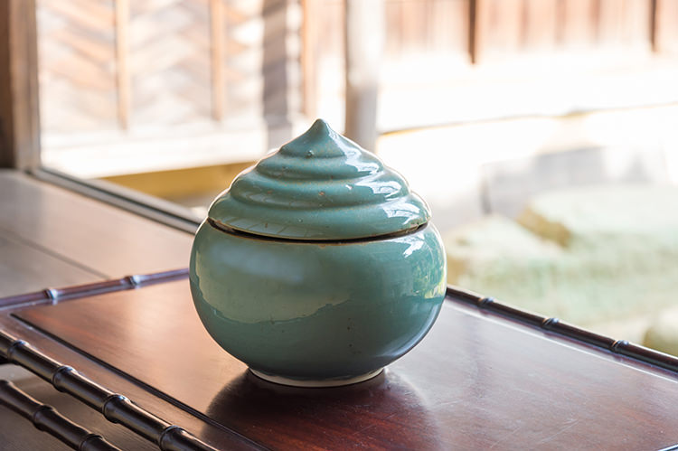 「今は世に万古の方を知るもの我より外になし」とまで自負した竹斎の古万古再興にかけた意欲は、窯に集まった陶工の面々を見れば歴然。絵付師の服部閑鵞(かんが)や陶工の井田己斎(きさい)(下総)、植島弥兵衛(江州信楽)、奥田弥助(伊賀丸柱)、近藤勇(京焼の名手)らを呼び寄せ、茶碗、急須、徳利などの日用品から、燈籠、茶道具に至るまで、多種多様の製品を製造しました。やがて経営不振に陥り、7年後の文久3年(1863)に廃窯。